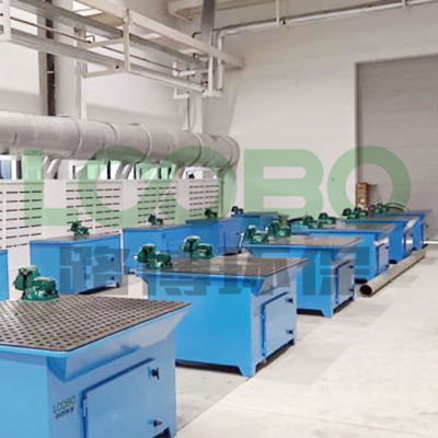 該案例打磨除塵系統考慮到了環保驗收的所有技術要求,本除塵系統包含打磨工作臺、吸塵風墻和與其相配套的除塵器等除塵設備和送新風設備,以及全新的風機、電機、控制柜、防爆隔音閥、管道、地溝蓋、虎鉗等配套設備。